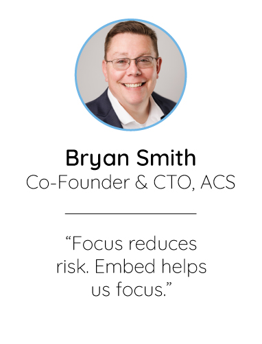 Matt Alexander, ACS’s Co-Founder & CEO, came from the IT services world; Bryan Smith, the company’s technical leader and Co-Founder & CTO, brought deep experience from the intelligence and cybersecurity community. Together, they’ve built a lean, expert-driven MSSP that thrives by combining smart technology with human judgment. Here’s how they use Embed’s agentic security platform to keep that balance.
